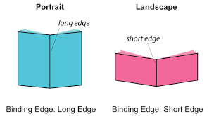 A ilustração a seguir representa um documento Retrato (borda longa) e outro em paisagem (borda curta):