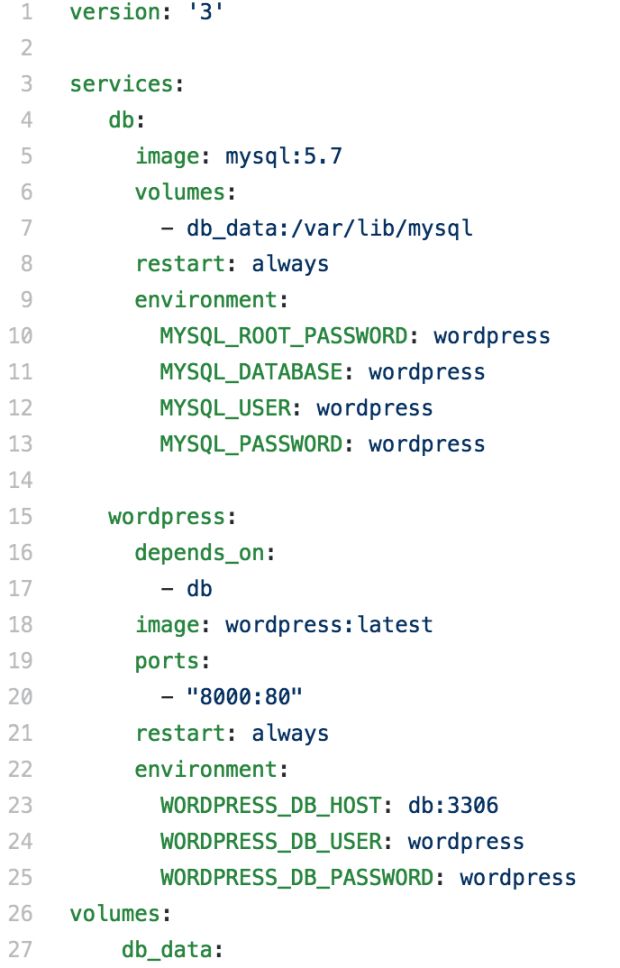 O arquivo YAML define todos os serviços a serem implantados. Esses serviços dependem de um DockerFile ou de uma imagem de contêiner existente.
