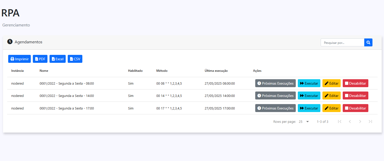 Permite consultar todos os agendamentos de execução dos bots.