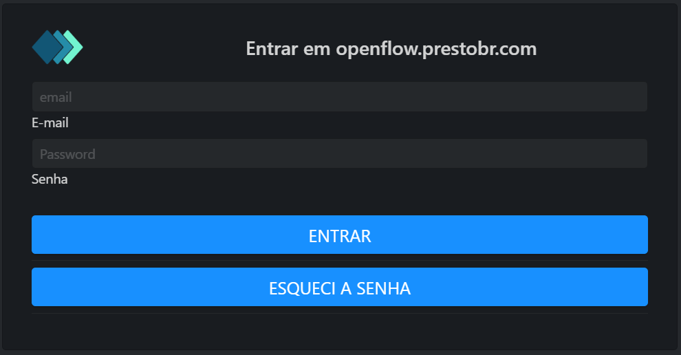 - Insira seu e-mail e senha fornecidos pela PrestoBR.